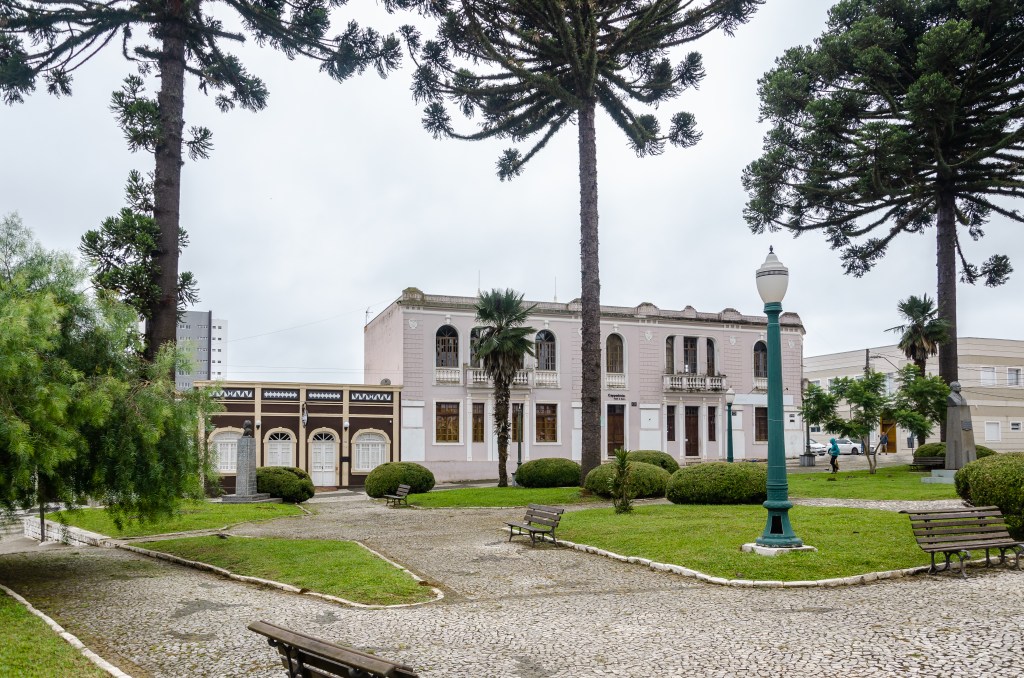 Para onde se olha em volta da Praça Manoel Ribas, há edifícios históricos, com arquitetura que fascina qualquer apaixonado pela história brasileira e do estado do Paraná.
